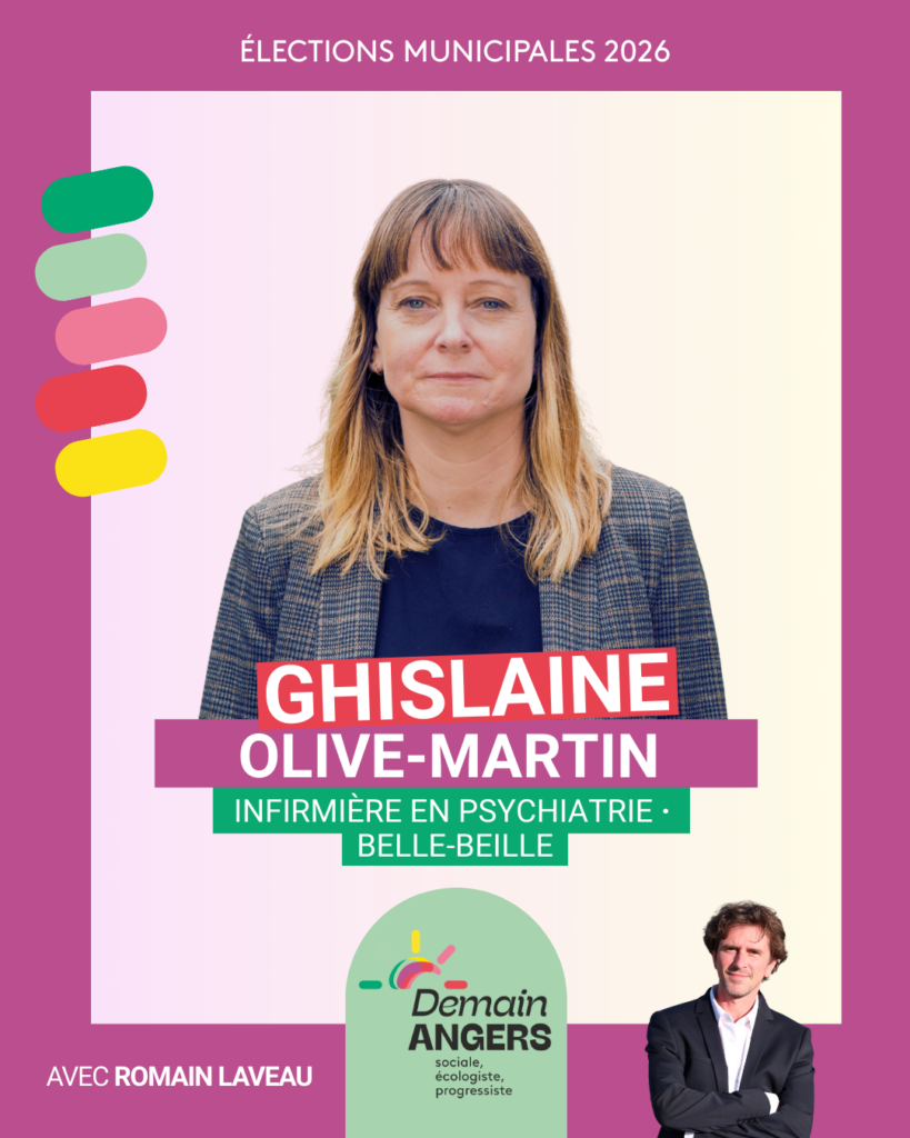 Infirmière en pédopsychiatrie, j’accompagne des adolescents en souffrance psychique et leurs familles dans leur quotidien. Mes collègues me reconnaissent comme une personne engagée. La question de la santé des Angevin·e·s, et plus particulièrement de leur santé mentale, me tient à cœur.