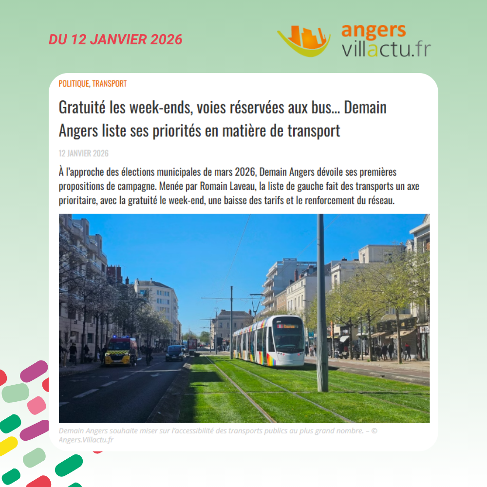 Le 9 janvier 2026, Demain Angers a tenu une conférence de presse consacrée aux transports en commun.